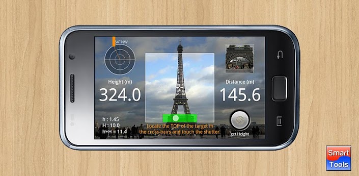 Изиеритель для Андроид. Описание: С помощью измерителя и вашего Андроида, вы можете измерить растояние выосоту. Измеритель для андроид расчитует и измеряет растояние и высоту с помощью тригонометрии. Много ума от вас так каково и не требуется, вам нужно только открыть крышку затвора на камере и нажать кнопку. Для точного измерения, важно запомнить, что бы объектив камеры был строго нацелен на тот предмет или конечную точку точно. К примеру, если измерить растояниеот вас, до другого человека, вам нужно нацелиться ему в ботинки.